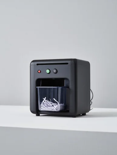 Compact shredder for confidential documents.